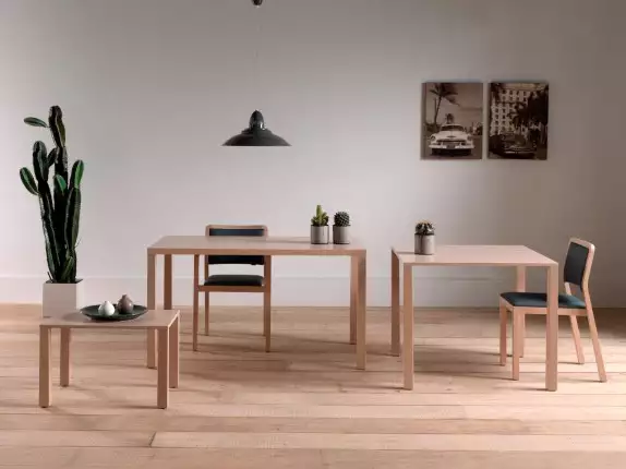 The slightly conical legs, inspired by the Stella chair, make the Stella table collection visually sleek and elegant. The legs only become wider on the inside of the table, so that several tables can beput next to each other without any problems.